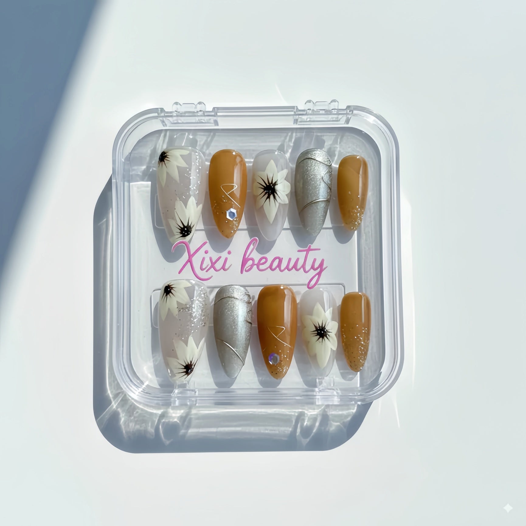 - 10 nails stored in an acrylic box.