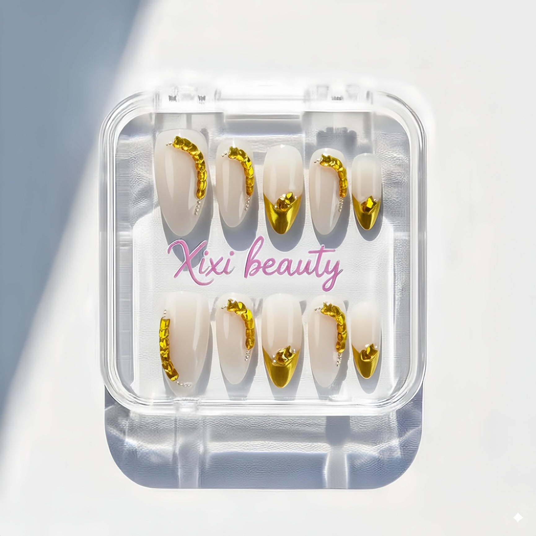 - 10 nails stored in an acrylic box.