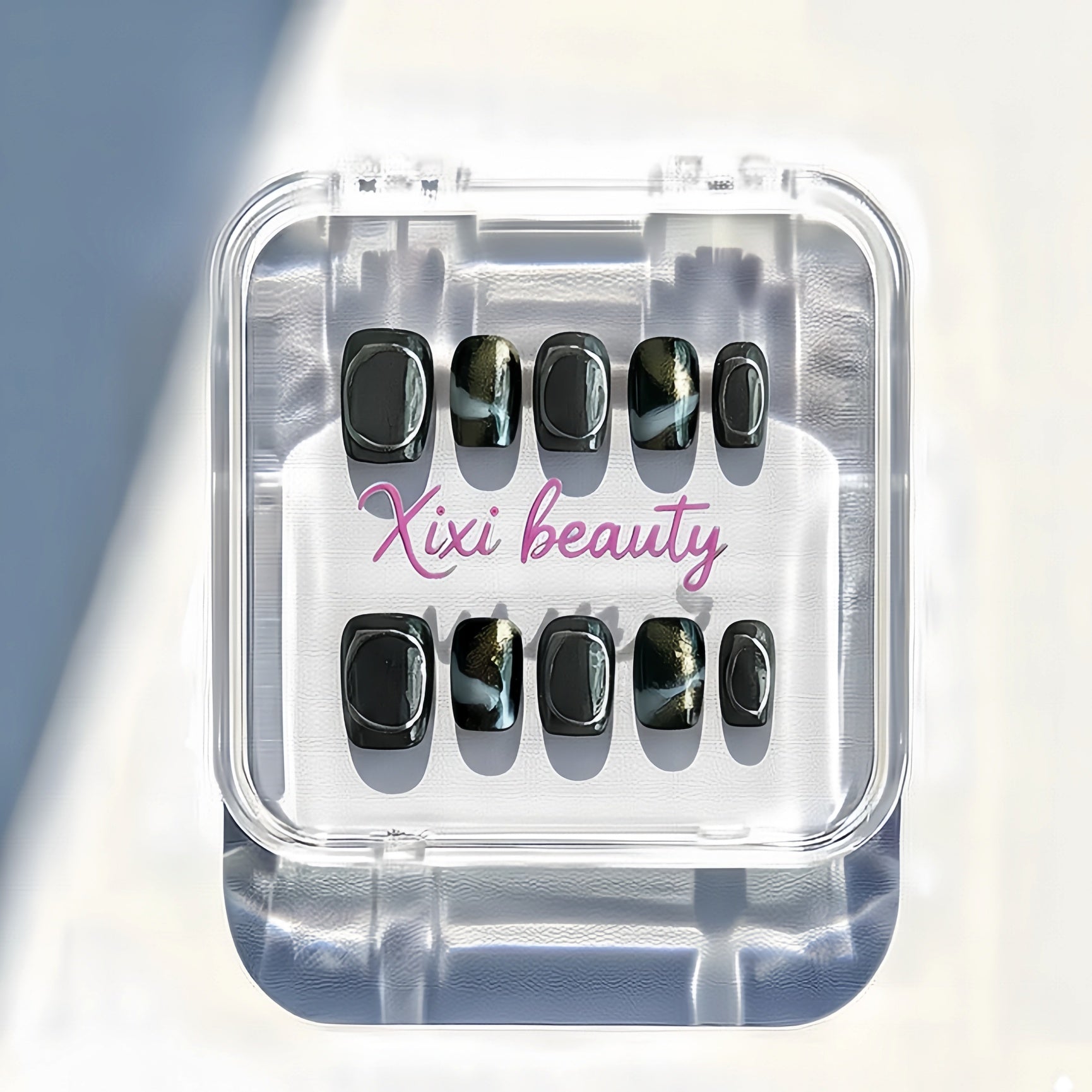 - 10 nails stored in an acrylic box.