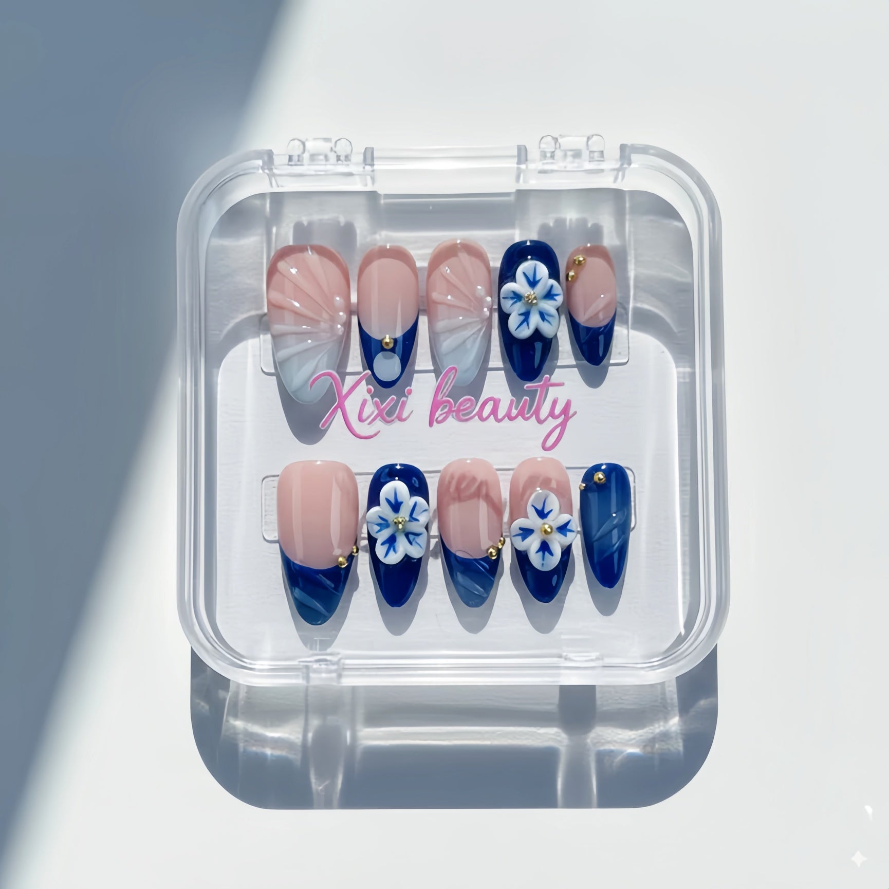 - 10 nails stored in an acrylic box.