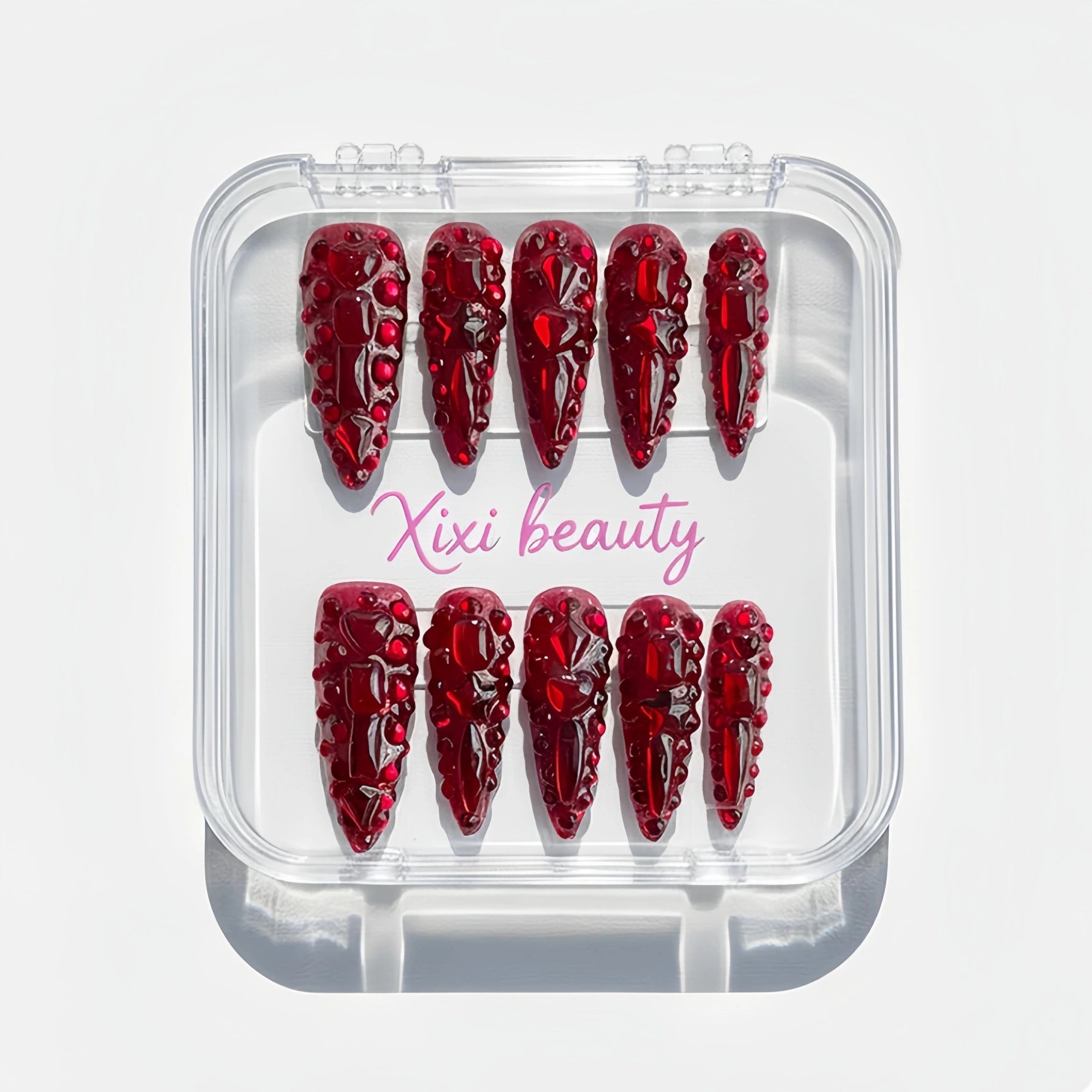 - 10 nails stored in an acrylic box.