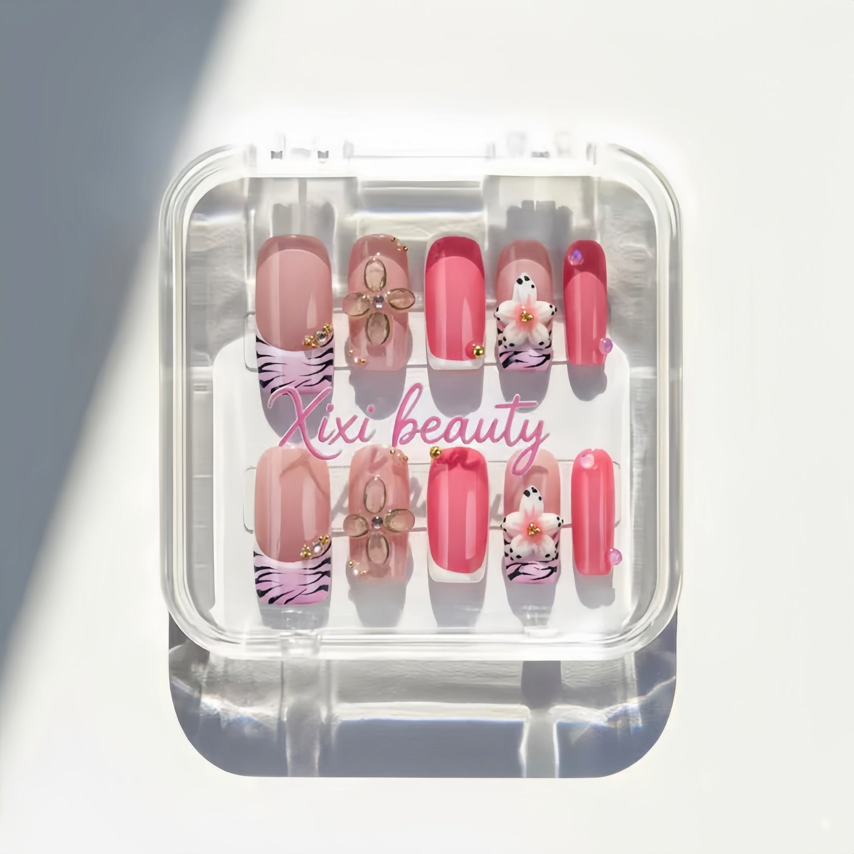 - 10 nails stored in an acrylic box.